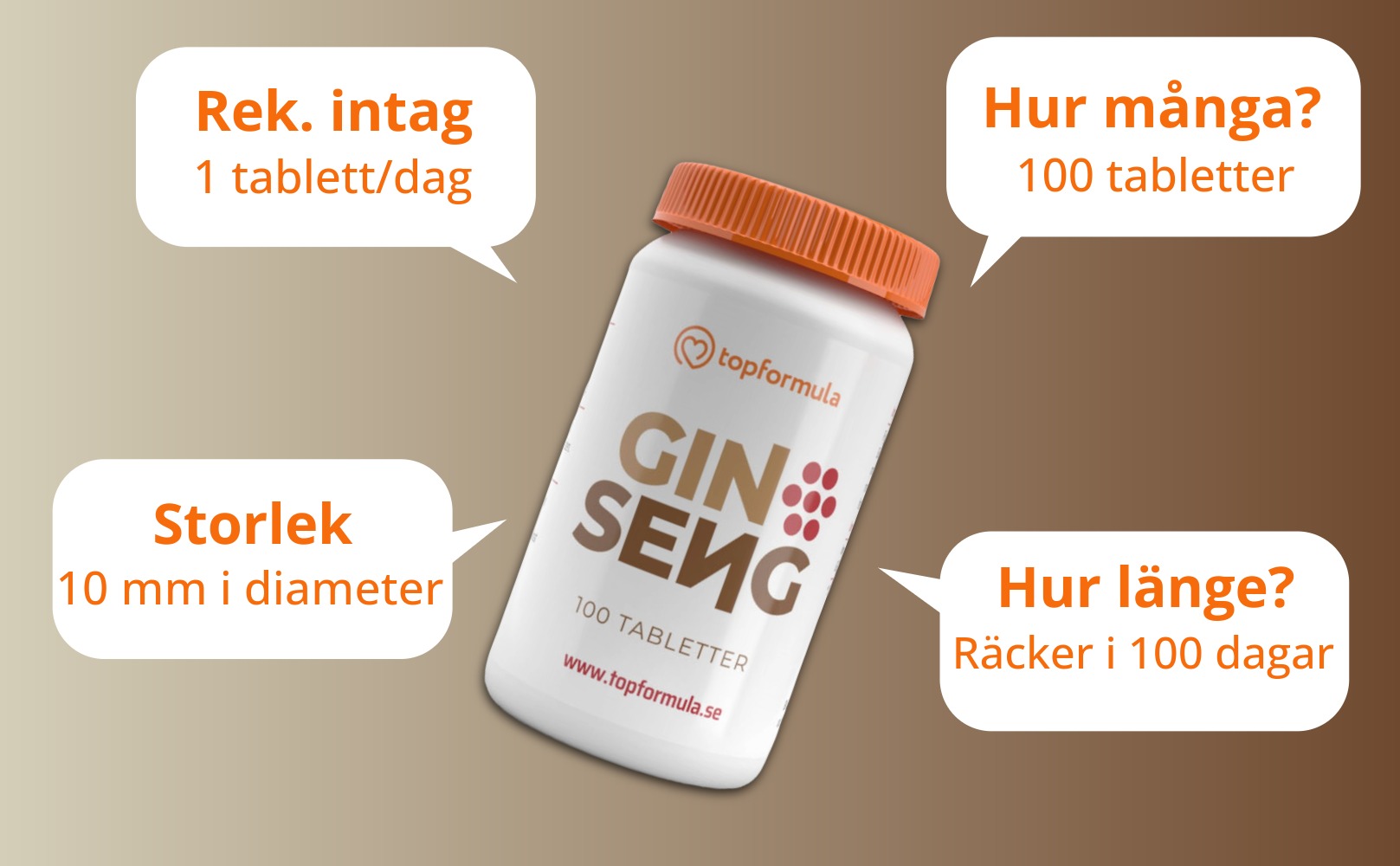 Topformula | Ginseng | 200 mg | 100 tabletter
