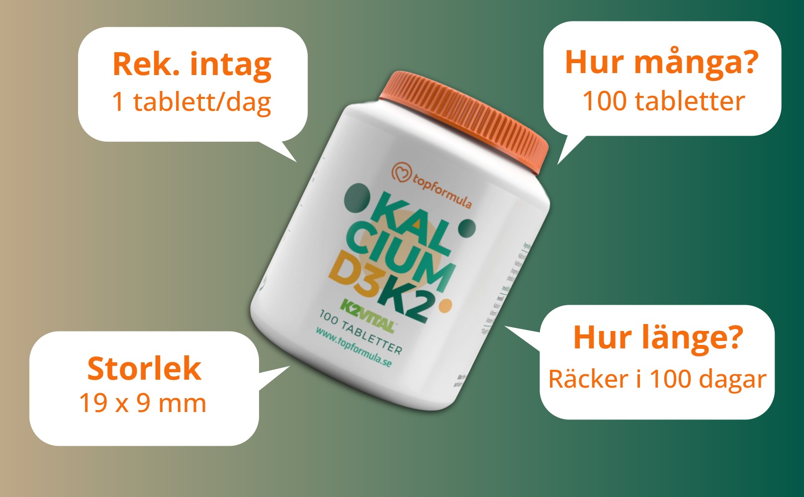 Kalcium + Vitamin D3 och K2 från Topformula – starka ben, starkare trio