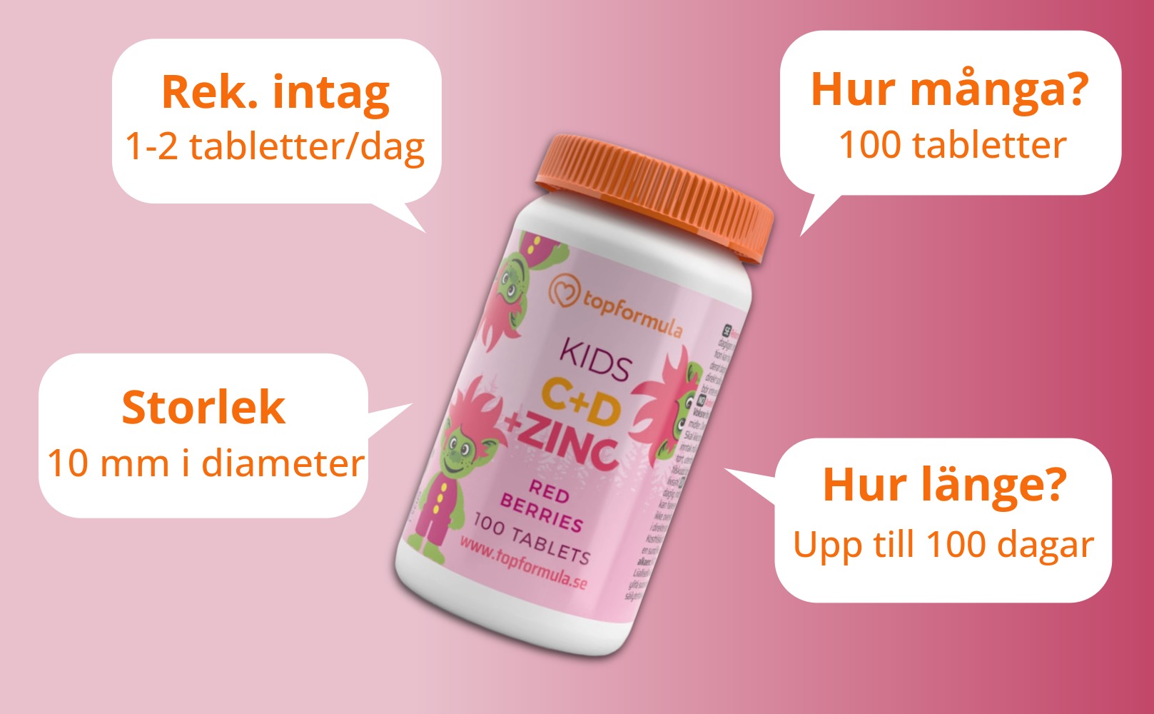 Topformula Kids | Vitamin C + D + Zink | 100 tabletter